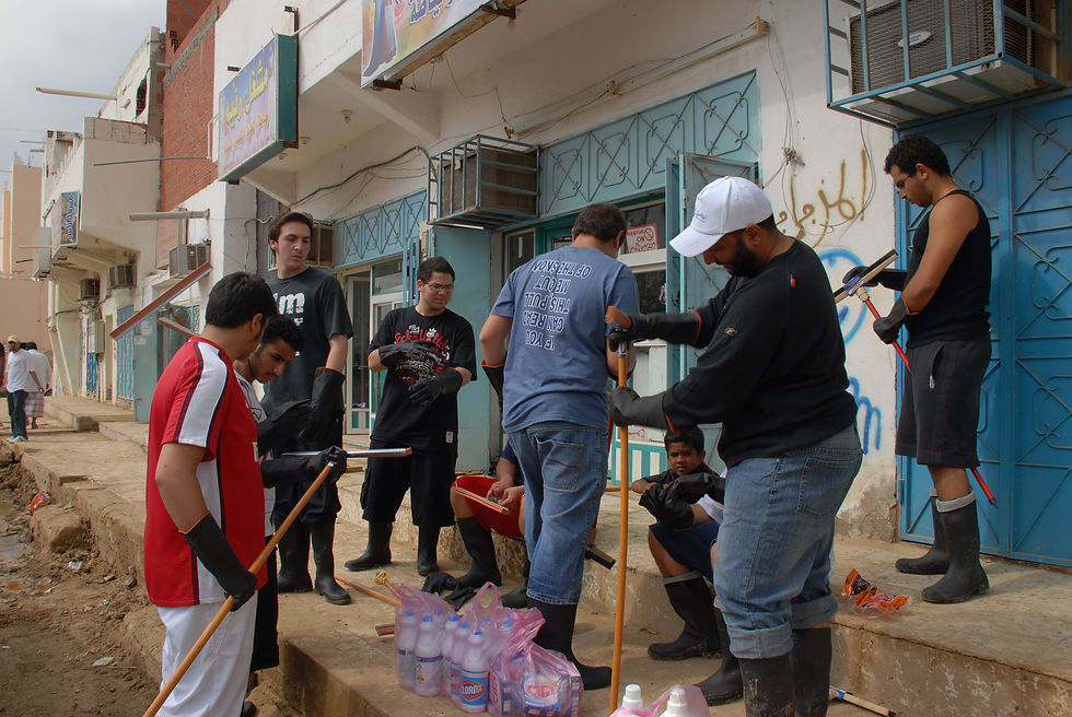 بل جعل الفضاء إنسانياً يشمل تقديم الأفكار والمساهمة في العمل والتضامن في المشاعر ، سواءً في مناسبات محددة كقافلة الخير في شهر رمضان ، أو في مواجهة أحداث طارئة وإقامة البازارات . ويقوم الطالب في المرحلة الثانوية بأداء خدمة المجتمع كمادة منهجية يؤديها في خمسين ساعة عمل تطوّعي يتم تقييمها وتقريرها في شهادة التخرّج .