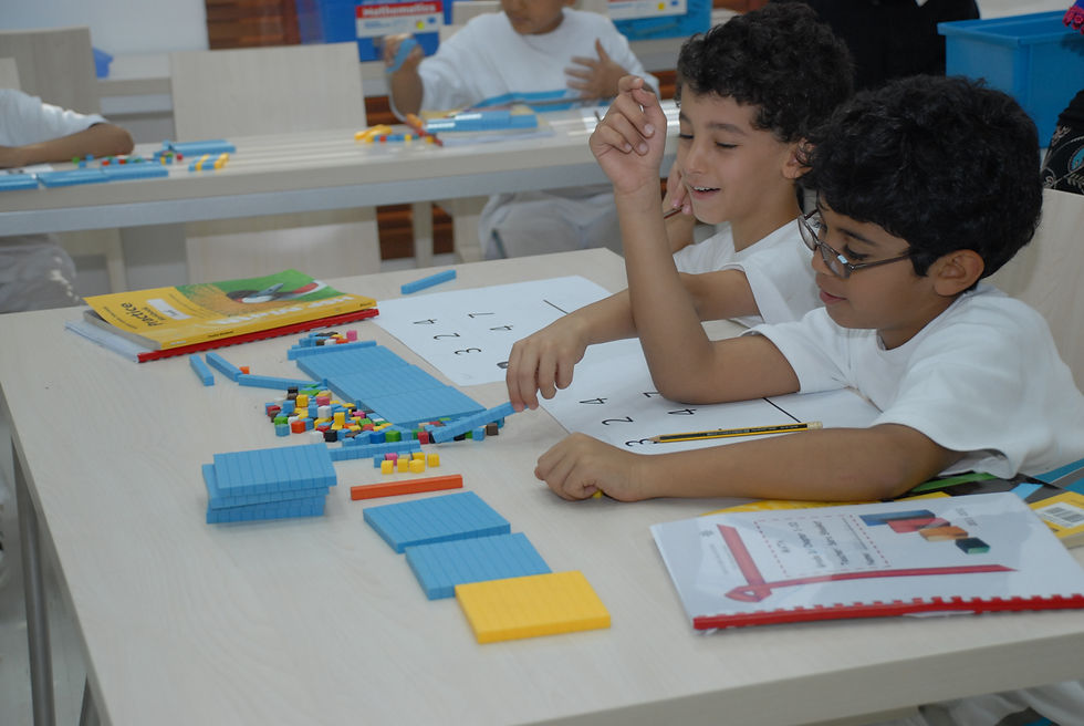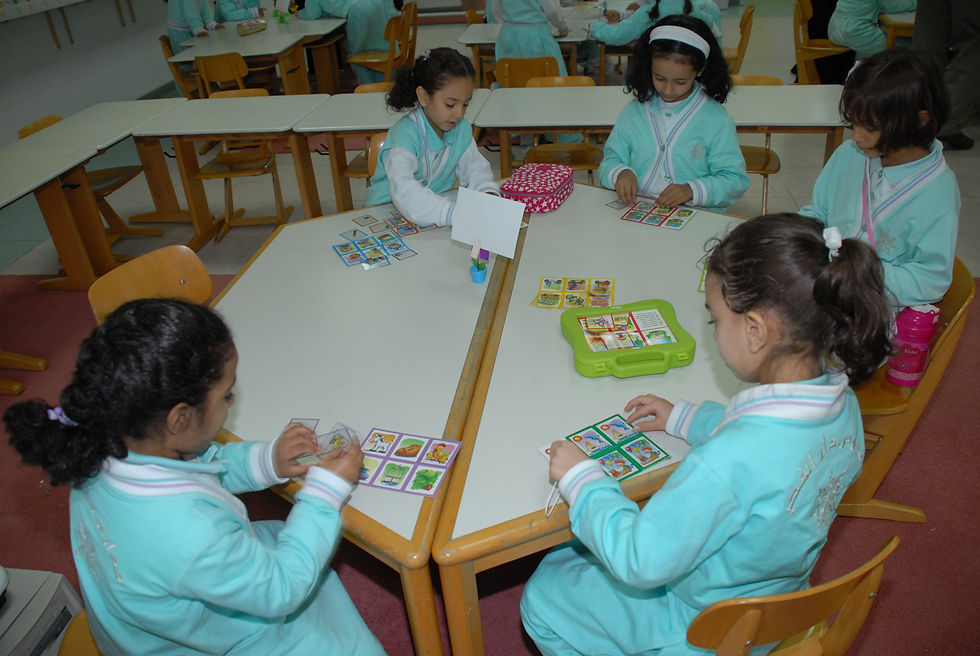 ففي هذه المرحلة يقترن التعلم بالمحسوسات في اللغة والرياضيات ثم تبدأ رحلة التجريد بالتدريج.صُمّمت الغرفة الصفية لتضم أركان :
